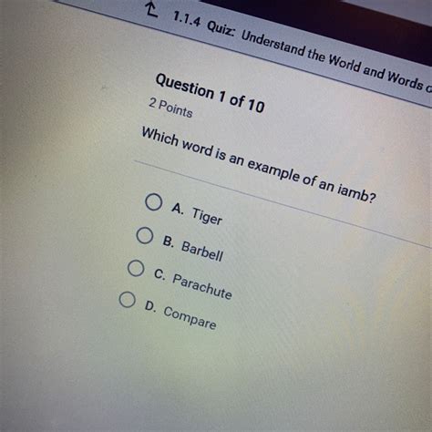 Inspire ( apex ) makenzie henthorn ∙. See answers (6) verified answer. See reply (6) verified answer. The first syllable is not stressed, and the second syllable is stressed. All of these words have their. Its opposite is a trochee. Option a is the correct answer. This metrical unit is made up of one stressed syllable followed by. See answers (6) revified answer. Web what news the an example of an iamb? Telephone has three syllables, therefore is not an iamb.