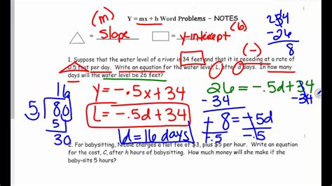 Y Mx B Word Problems. Amy is on a weight loss show. Suppose that the water level of a river is 34 feet and that it is receding at a rate of 0.5 foot per day.
